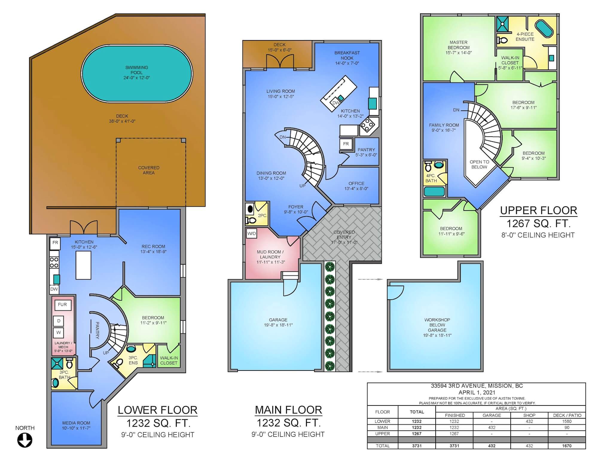 Vibrant Full Colour floor plans with local Real Estate Board approved square footage breakdown.